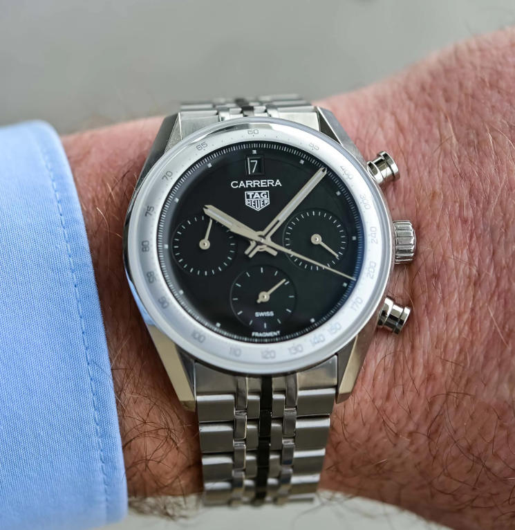 Limited to 500 numbered pieces and already available from the brand, the cheap fake TAG Heuer Carrera Chronograph x Fragment watches is priced at CHF 8,150 or EUR 9,000.